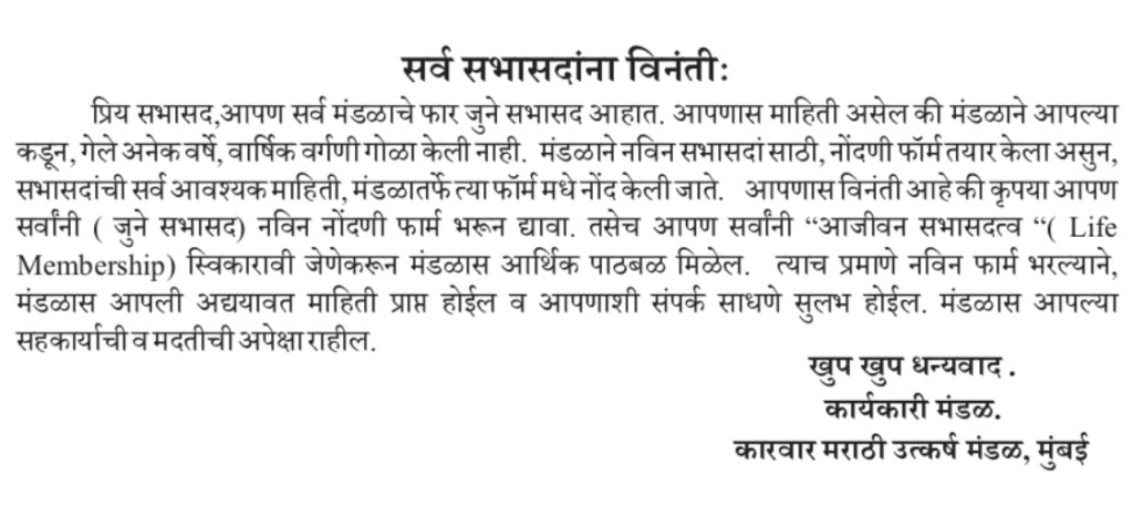 KARWAR MARATHI UTKARSH MANDAL, MUMBAI (abbreviated as KMUM), is a non- profit making, voluntary organization was founded by a few visionaries from Karwar District, Uttara Kanara (North Karnataka) who had settled in Mumbai in order to render community services as they valued and believed in serving and working towards the welfare of society and betterment of underprivileged section of community